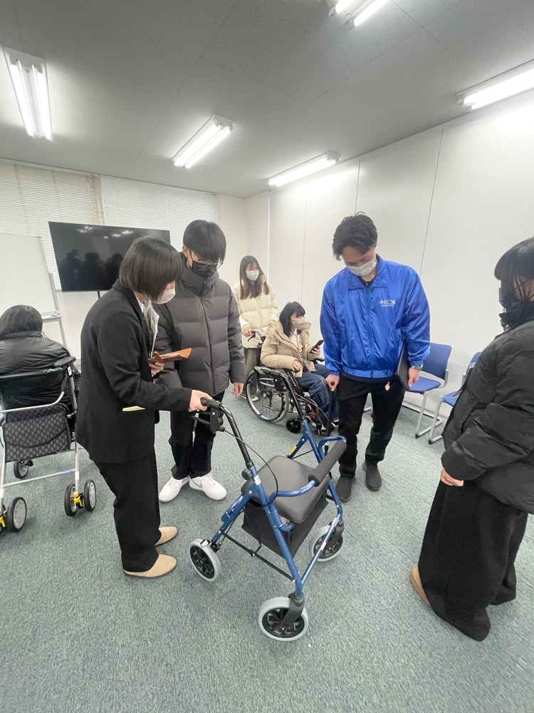 介護福祉学科の学生との交流、実習体験、介護施設・福祉用具メーカーの見学を行いました。